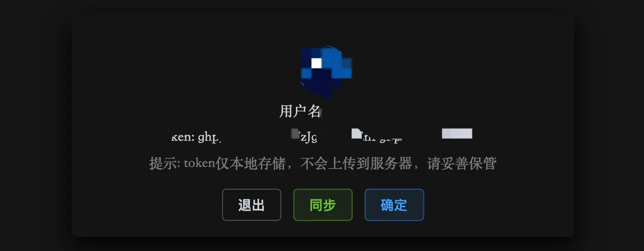 • 当你填入 token 并验证成功后,会在右上角展示你的 github 头像,点击头像可以查看你的 github 昵称和 token,点击头像会跳转到你的 github 个人主页,点击 token 会将 token 复制到你的粘贴板。如果在使用过程中有遇到问题,可以进交流群咨询